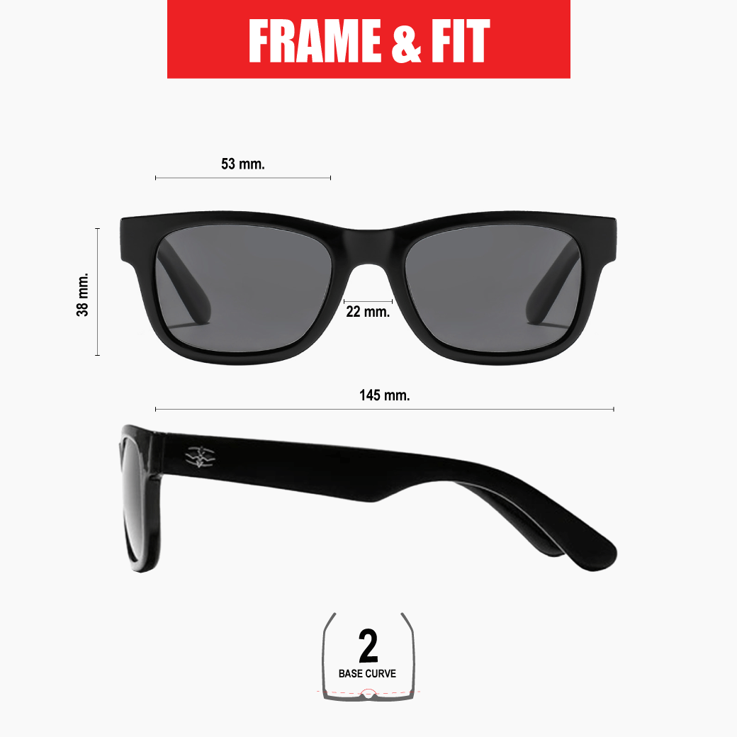 Specs – Eye Size 53mm, Bridge 20mm, Temple 145mm, Eye Depth 38mm