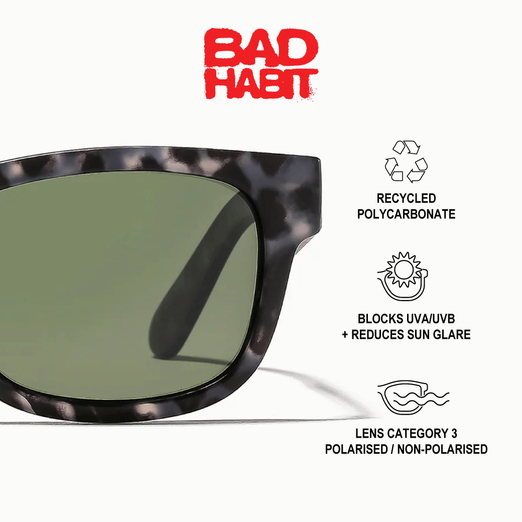 Each frame is made using a combination of recycled materials and is hand-assembled, polished, and packed for a more sustainable finished product. The recycled materials come from various pre- and post-consumer plastic waste sources, forming our finished polycarbonate frames.