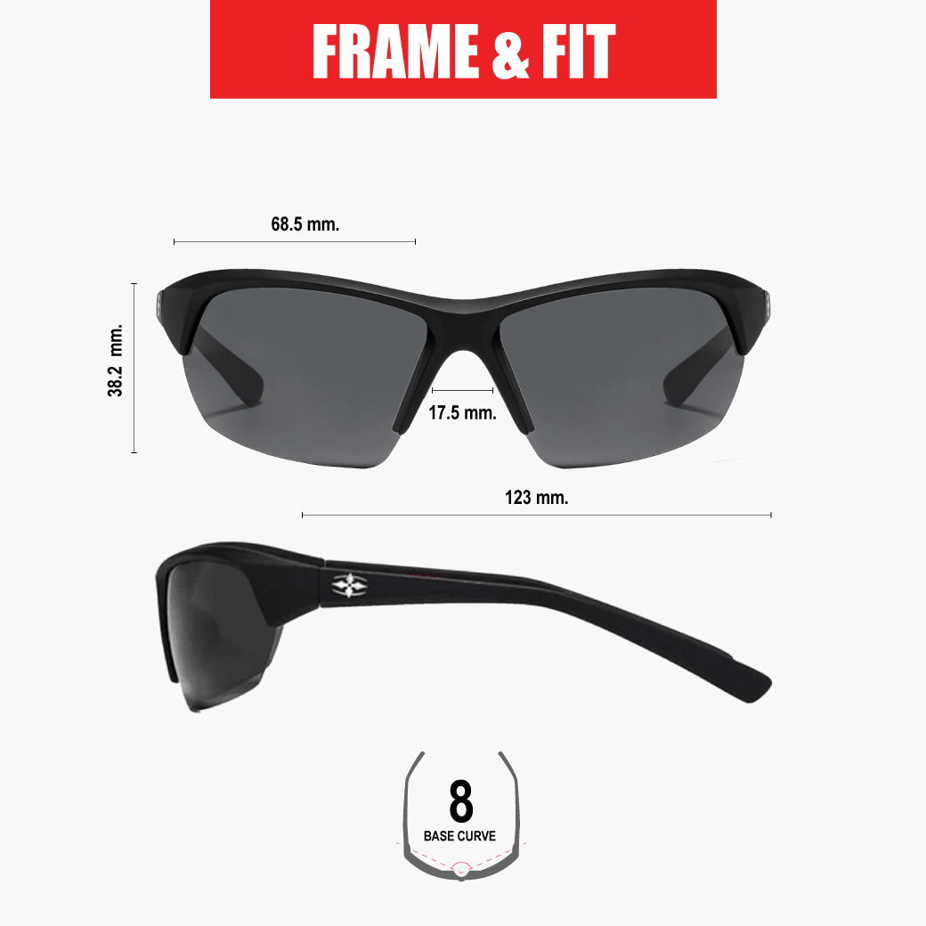 Specs – Eye Size 68.5mm, Bridge 17.5mm, Temple 123mm, Eye Depth 38.2mm