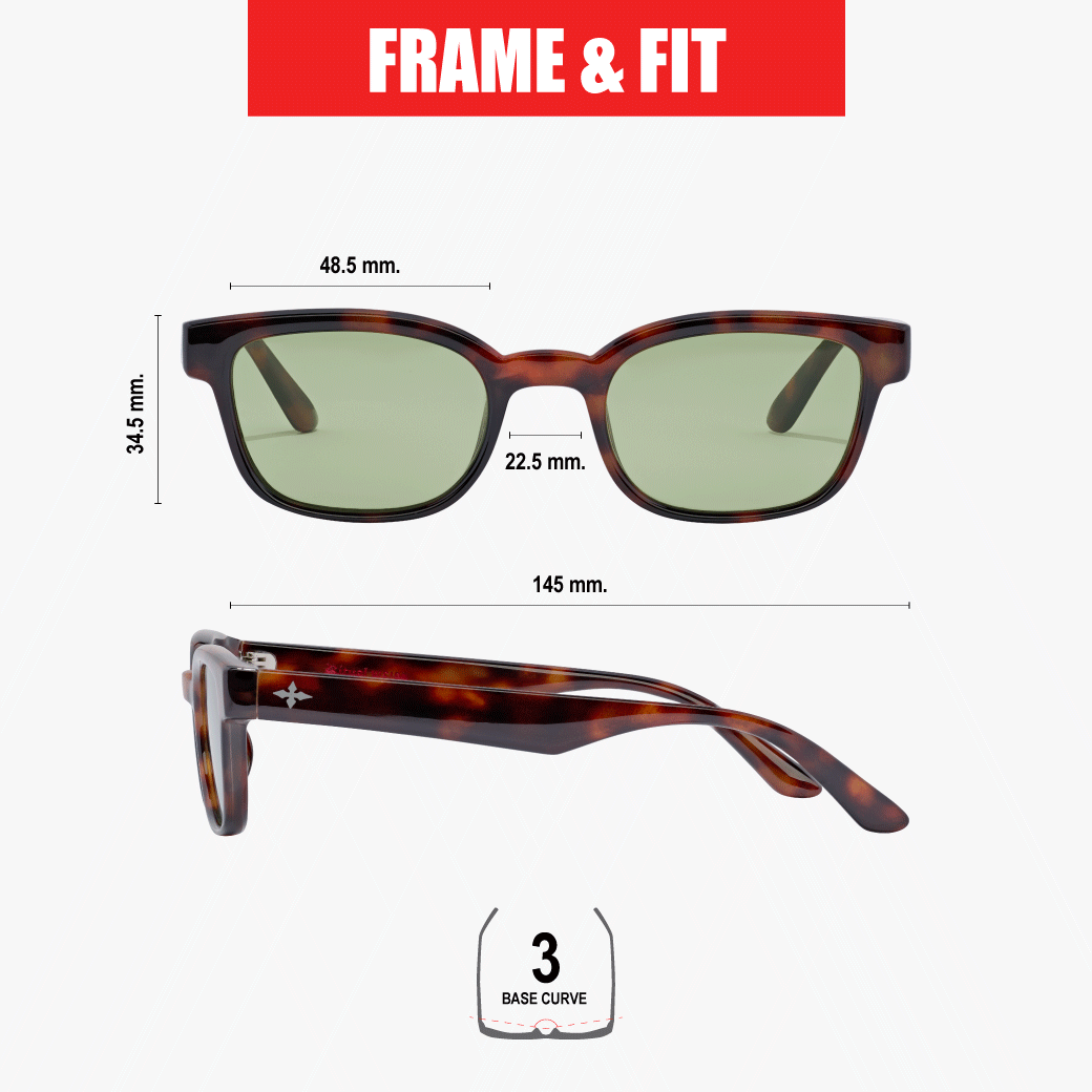 Specs – Eye Size 48.5mm, Bridge 22.5mm, Temple 145mm, Eye Depth 34.5mm