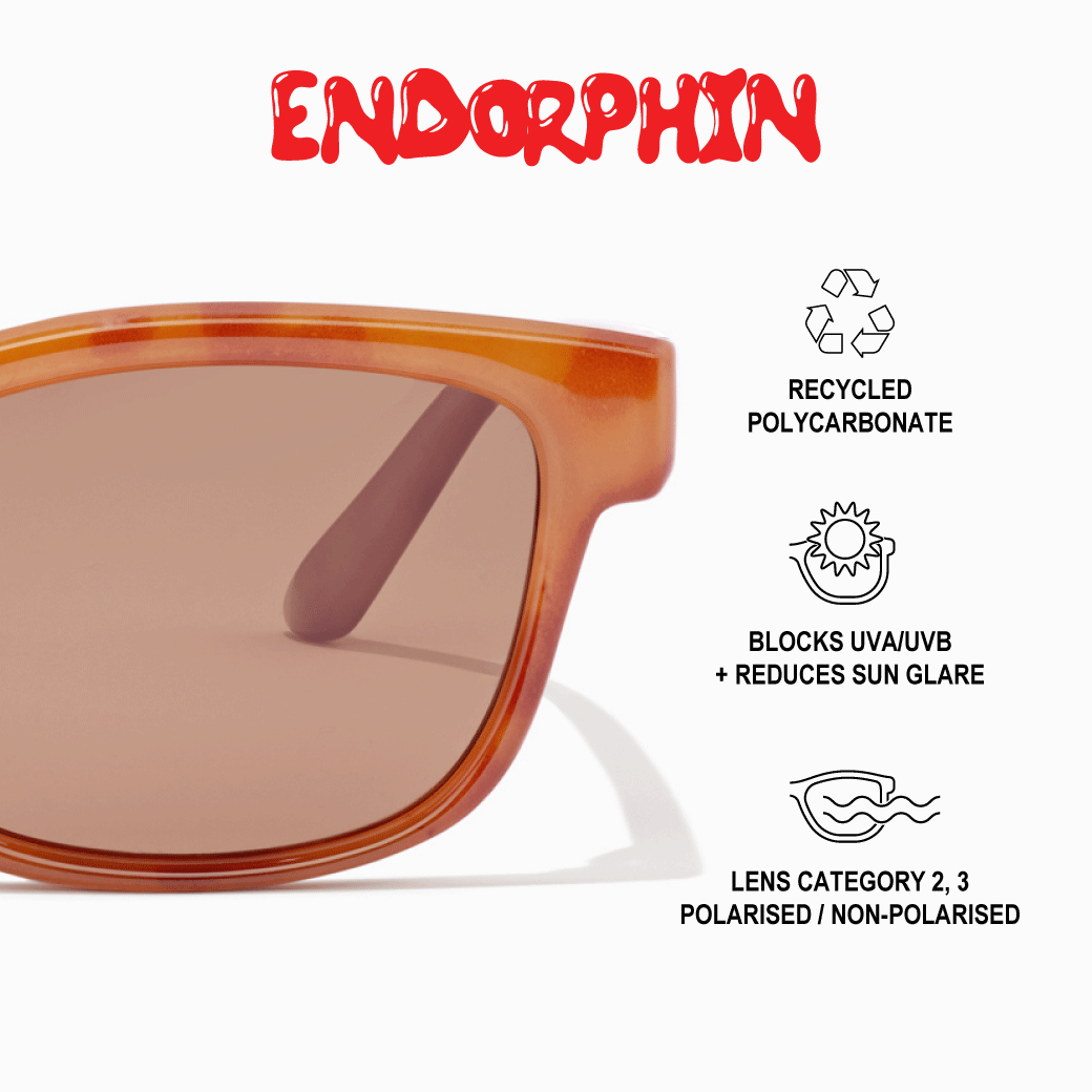 Each frame is made using a combination of recycled materials and is hand-assembled, polished, and packed for a more sustainable finished product. The recycled materials come from various pre- and post-consumer plastic waste sources, forming our finished polycarbonate frames.