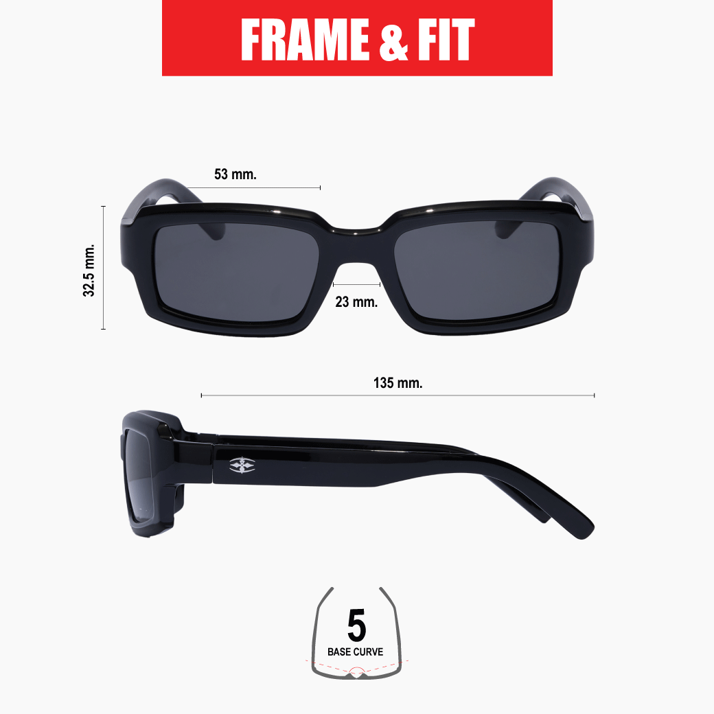 Specs – Eye Size 53mm, Bridge 23mm, Temple 135mm, Eye Depth 32.5mm