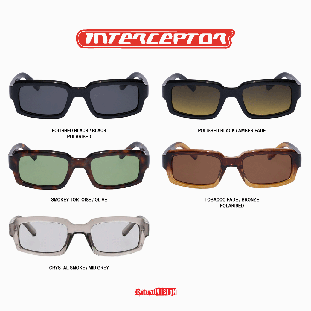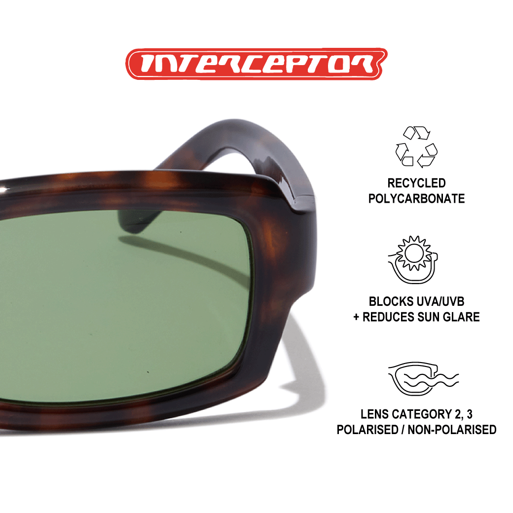 With wide lenses for maximum shade and temple tips that flow smoother than your layback, the Interceptor has a strong brow-line that’s chiselled for a sculptural highlight. Ready to ride into the next dimension?